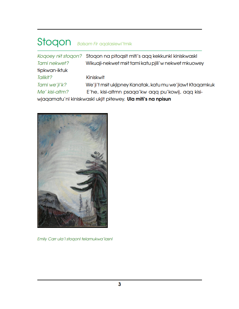 This is a brief guide to trees (I say brief, but it is 33 pages) that can be found in the Atlantic region. I have paired each tree (or, where possible) with a painting in the style of the Group of Seven, whether by them or another artist. Hopefully I have credited each artist enough, or that the paintings are within the public domain enough to where I can use them like this. This is more of an exercise in me writing in Mi’kmaw just to practise, and it also helps me learn about trees. It is entirely in Mi’kmaw except for that I give each tree’s name in English too, and tt has not been looked over by a native speaker, so I would view each use of Mi’kmaw here with the utmost caution.